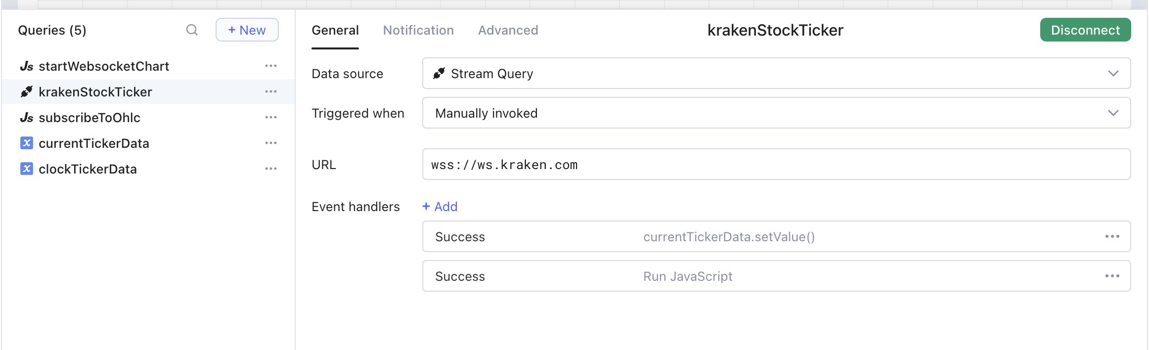 ### Using a WebSocket as Datasource.